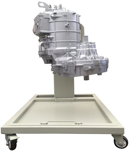 電機(jī)與變速器總成(附件齊全,易于拆裝,翻新 比亞迪E5)、拆裝翻轉(zhuǎn)架(帶自鎖腳輪裝置,帶立柱鋼管200*200*5mm,950×680×850mm長(zhǎng)×寬×高,帶減速機(jī)可做軸向任意角度的翻轉(zhuǎn)和靜止)、大面積接油盆(660×590×35mm長(zhǎng)×寬×深)、減速機(jī)構(gòu)(帶搖手盤(pán)等附件,WPA70)