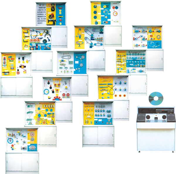 《機(jī)械設(shè)計(jì)基礎(chǔ)》示教陳列柜是根據(jù)教育部高職高專規(guī)劃教材設(shè)計(jì)的電化教學(xué)設(shè)備。本陳列柜共分十三個(gè)柜和一個(gè)電腦控制臺(tái),并配有一臺(tái)功率放大器,VCD機(jī)和激光片,聲控同步演示,采用單獨(dú)驅(qū)動(dòng)由電子設(shè)備控制演示,可由VCD控制順序自動(dòng)運(yùn)行講解;又能根據(jù)教材,教學(xué)需要而遙控任意選擇進(jìn)行單獨(dú)演示。模型材料采用進(jìn)口有機(jī)板和硬聚氯;板面附有必要的圖表和文字說(shuō)明,演示形象逼真,運(yùn)行可靠,制作工藝美觀,使用本陳列柜可提高教學(xué)效果,節(jié)約學(xué)時(shí),是一套現(xiàn)代機(jī)化械課程教學(xué)應(yīng)用實(shí)驗(yàn)設(shè)備。
