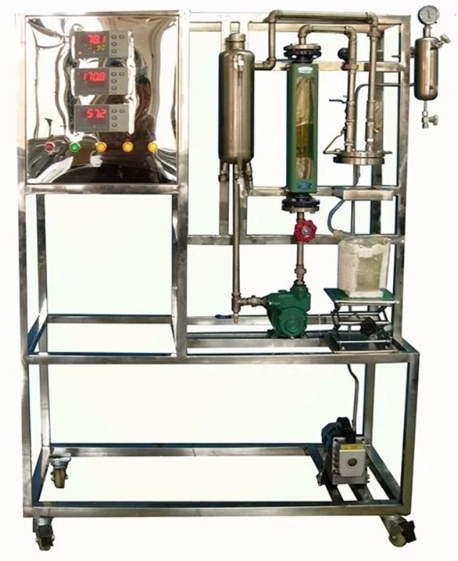 原料罐、加熱棒、溫度儀表、轉(zhuǎn)子流量計、料泵、放液閥、壓力計、溫度傳感器、膜組件、取樣瓶、冷井、真空表、緩沖罐、真空泵、不銹鋼支架、不銹鋼控制屏