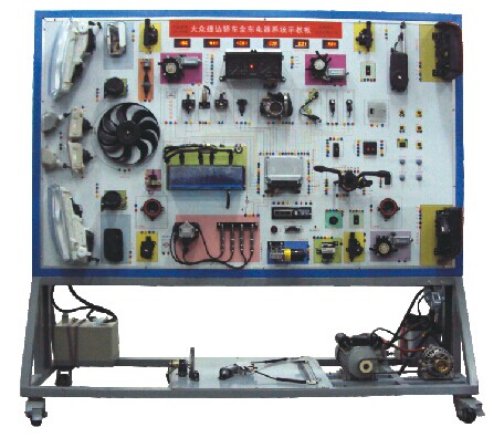 在整車電器基礎(chǔ)上,配備各相關(guān)輔助控制裝置,可如原車一樣實(shí)際演示起動(dòng)、充電、燈光、儀表、雨刮、中控門鎖、車身防盜、電動(dòng)窗、音響系統(tǒng)等全套整車電器設(shè)備的工作原理和過程;