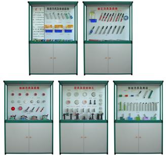 第四柜 | 圓柱形銑刀、成形銑刀、角度銑刀、鍵槽銑刀、半圓形銑刀、立銑刀、整體焊接式端銑刀、齒輪銑刀、直齒三面刃盤銑刀、錯齒三面刃盤銑刀、硬質合金端銑刀、銑階臺、銑特形面( 2 種)、圓柱銑刀銑平面。 |