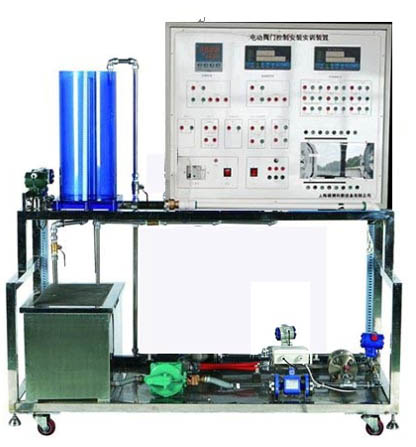 電動(dòng)閥門控制安裝實(shí)訓(xùn)裝置由水泵、壓力調(diào)解閥、電磁閥、水位傳感器、位式調(diào)節(jié)控制儀、無紙記錄儀、上下水箱等組成。