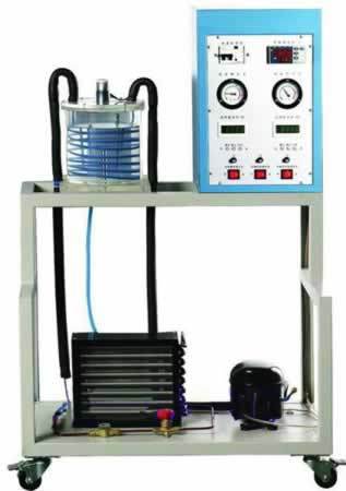 包括壓縮機、冷凝器、干燥過濾器、毛細管、有機玻璃圓柱體、紫銅管繞制的蒸發(fā)器、加熱器、馬達和攪拌器等。